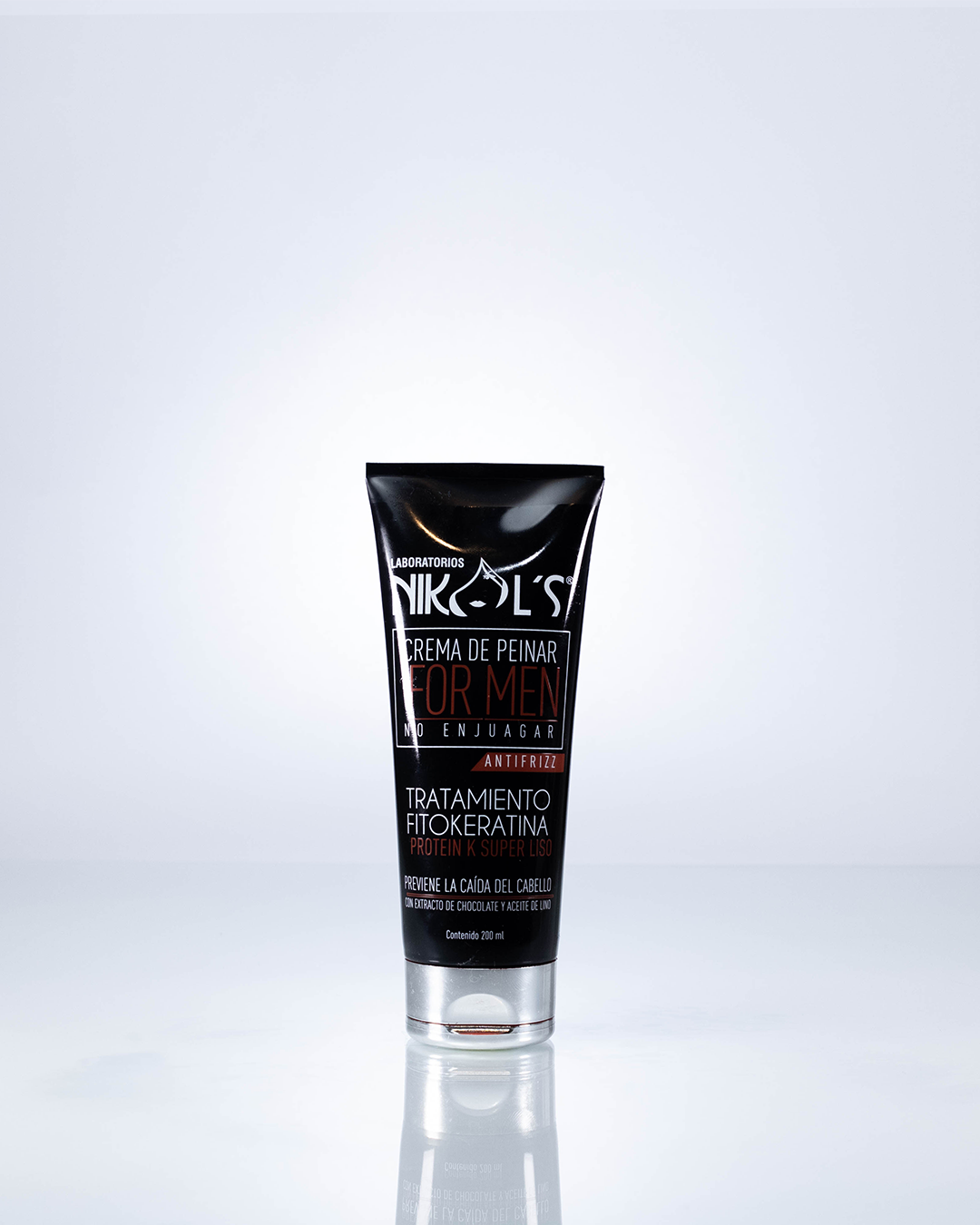 Bondades: Es un producto profesional formulado con tecnología natural, teniendo en cuenta las necesidades del cabello masculino, sus ingredientes naturales hidratan profundamente los cabellos debilitados y maltratados; además protege, moldea, fija, nutre y controla el volumen, dejando el cabello fácil de peinar, sedoso, fuerte y sin frizz. No enjuagar.