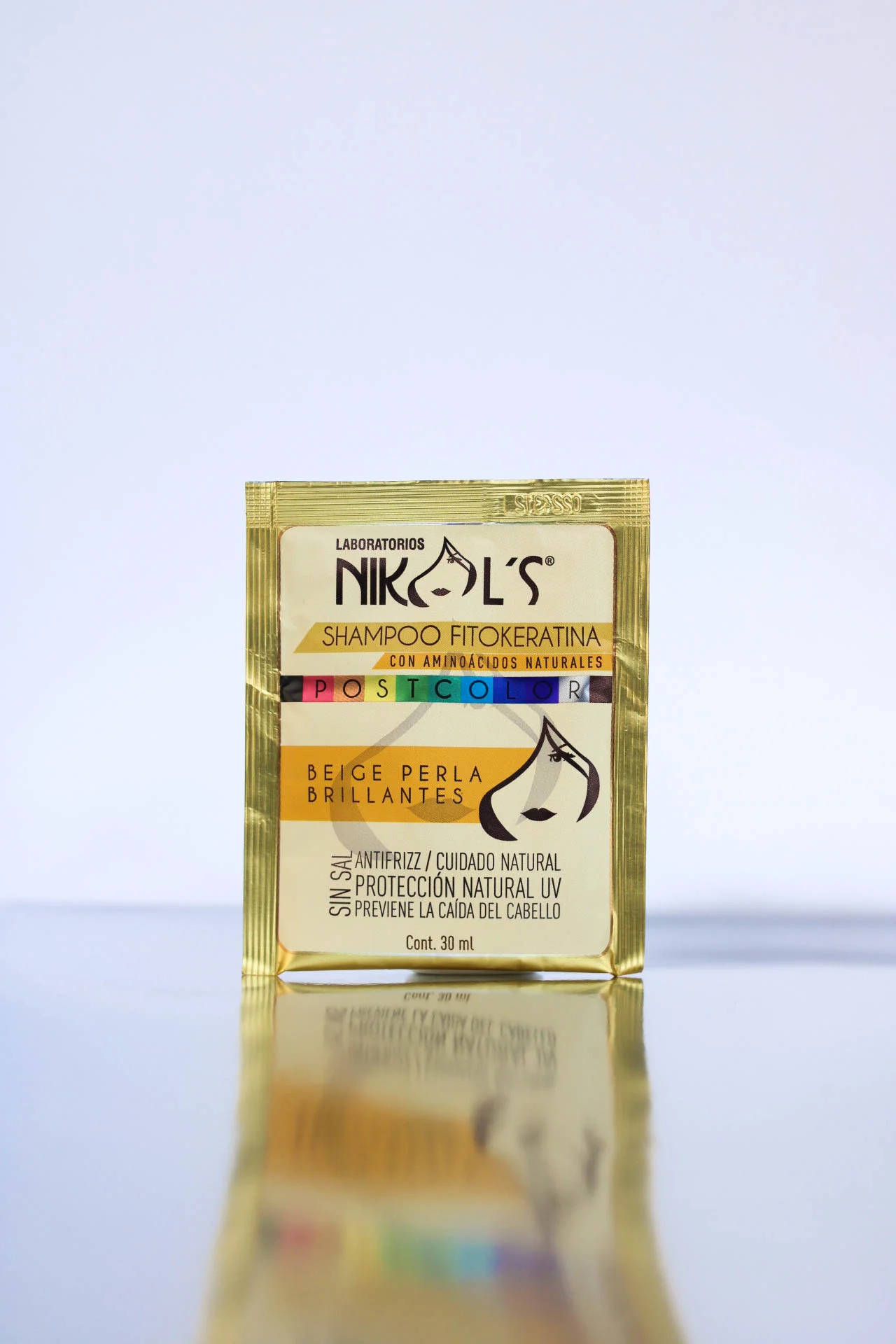 Ha sido formulado especialmente para cabellos naturales y químicamente tratados; ayudándoles a mantener el color por más tiempo. Al no contener sal recupera y mantiene sus propiedades naturales; previniendo reacciones o irritaciones en el cuero cabelludo, además protege el color del cabello y previene la resequedad. Su fórmula innovadora es muy útil después del color y la permanente, por tener un pH balanceado reduce la dilatación de la fibra capilar causada por el efecto químico, sellando la cutícula y de esta manera fija el color por más tiempo, otorgándole limpieza, brillo, sedosidad y humectación. El Shampoo Fitokeratina Nikol’s deposita color mientras matiza su cabello restaurando el color vibrante. Ideal para cabellos rubios naturales y tinturados.